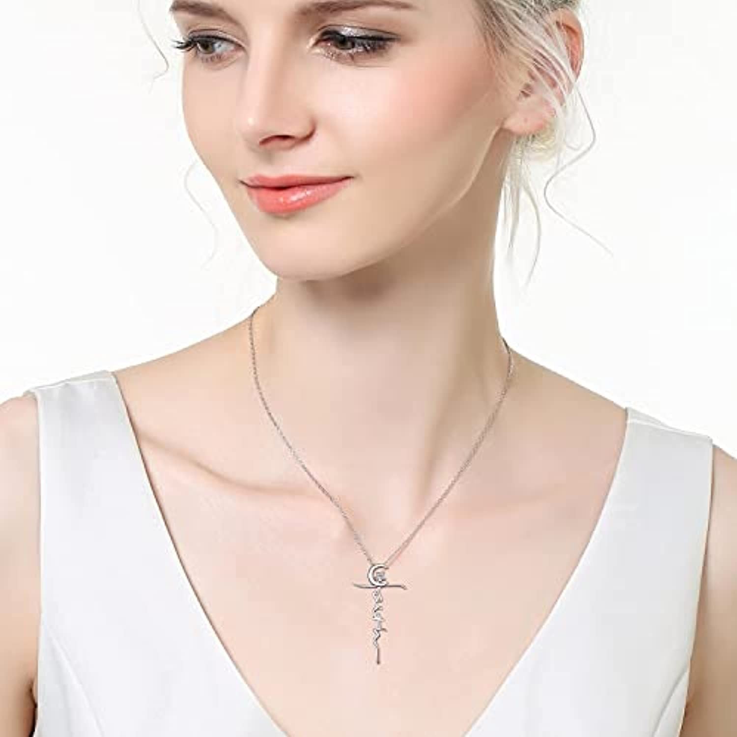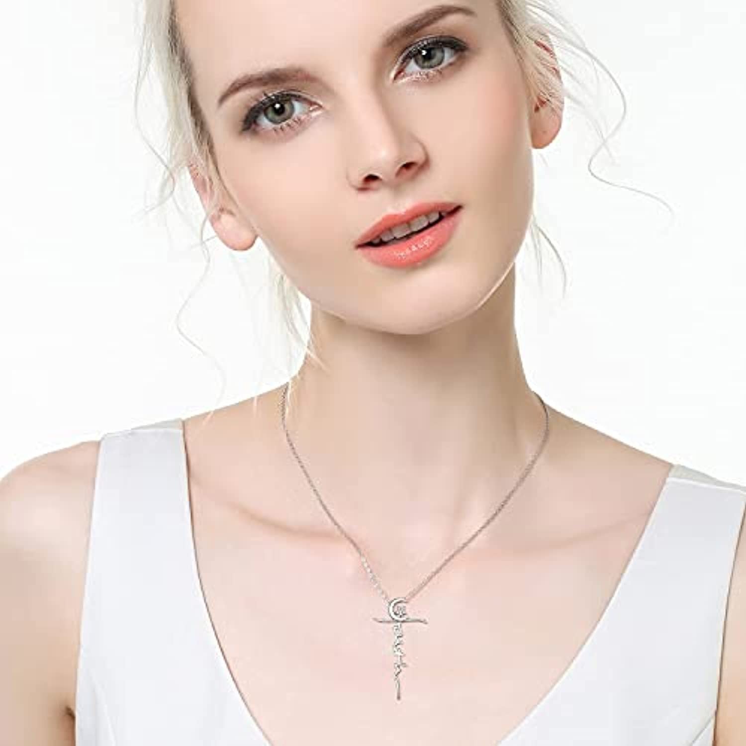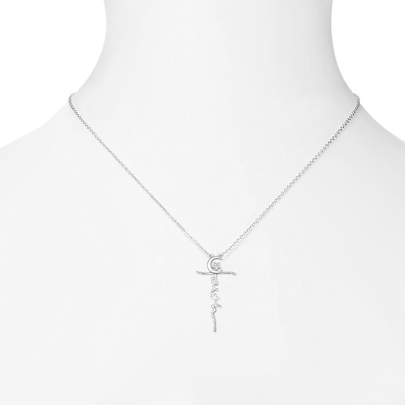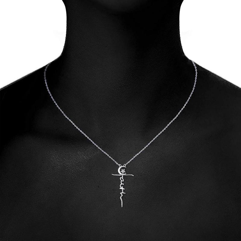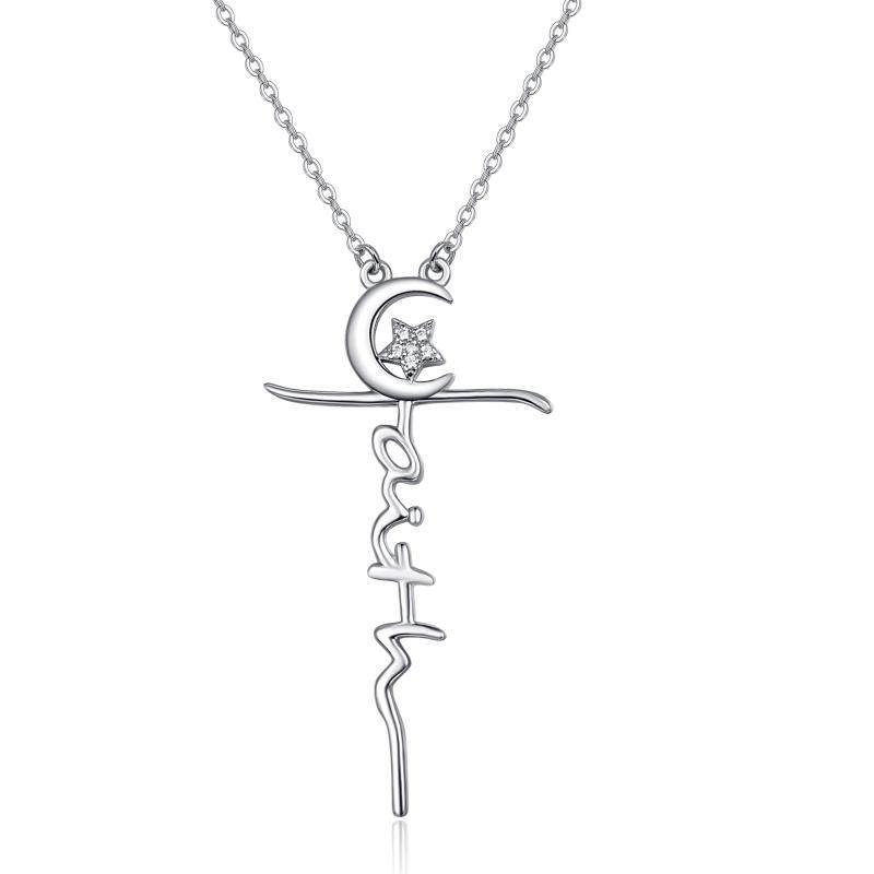 S925 Sterling Silver Faith Cross Moon And Star Necklace Pendant Jewelry