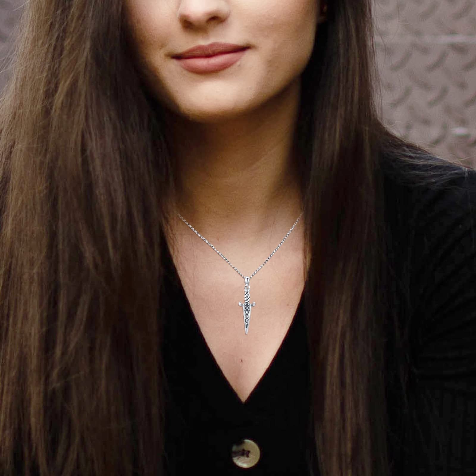 Silver Celtic-Style Double-Edged Dagger Retro Pendant Necklace Irish Jewelry Gift