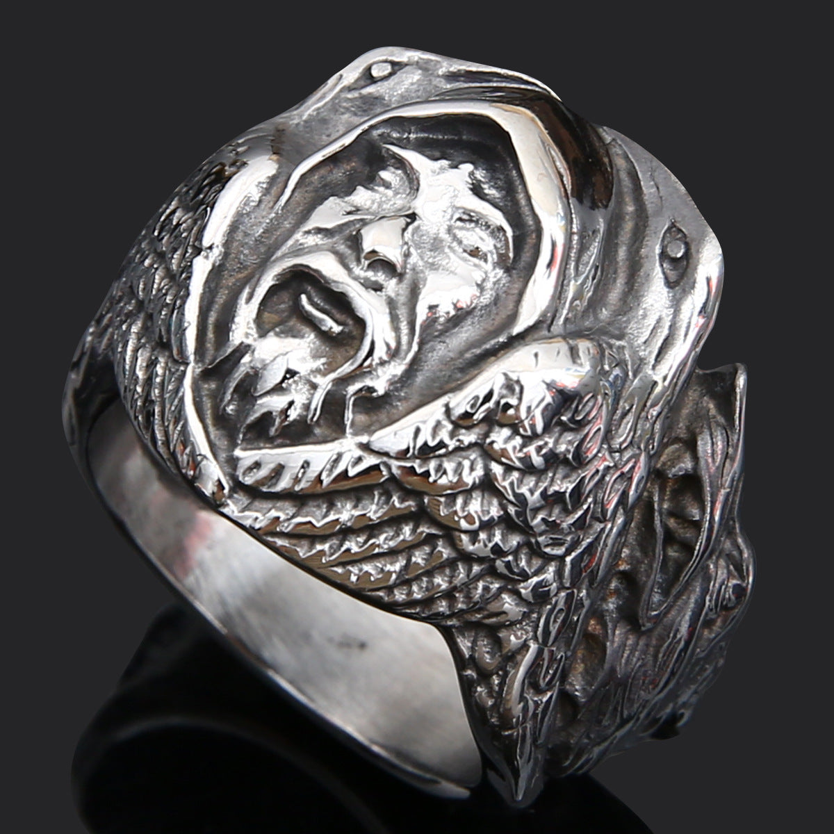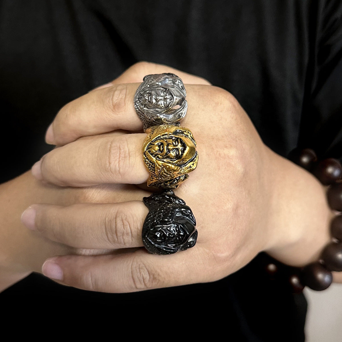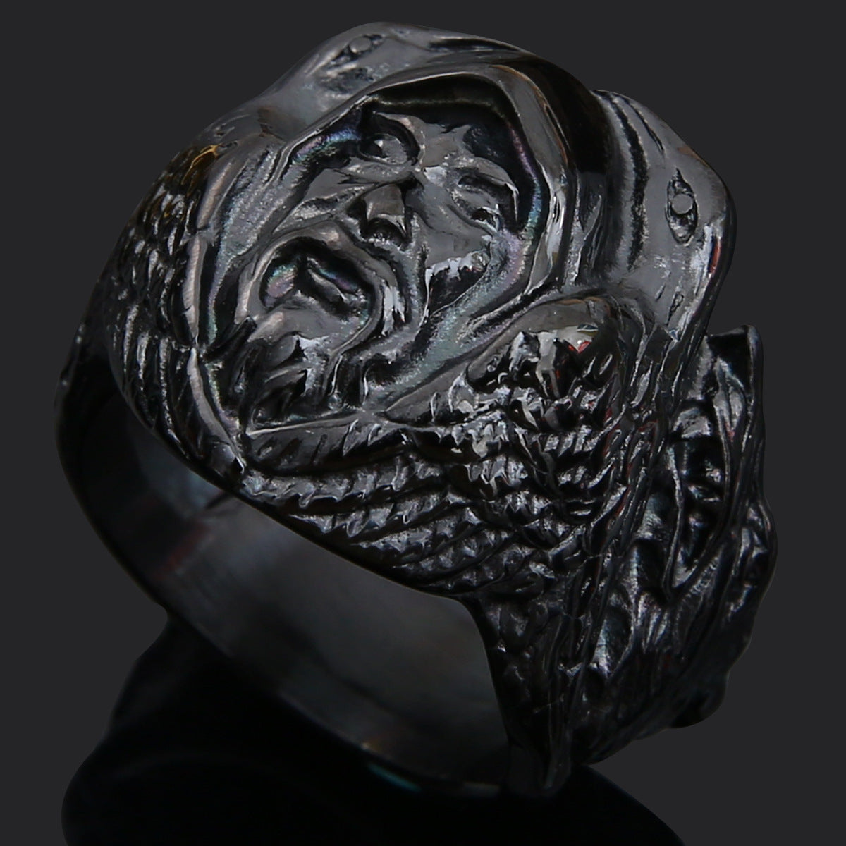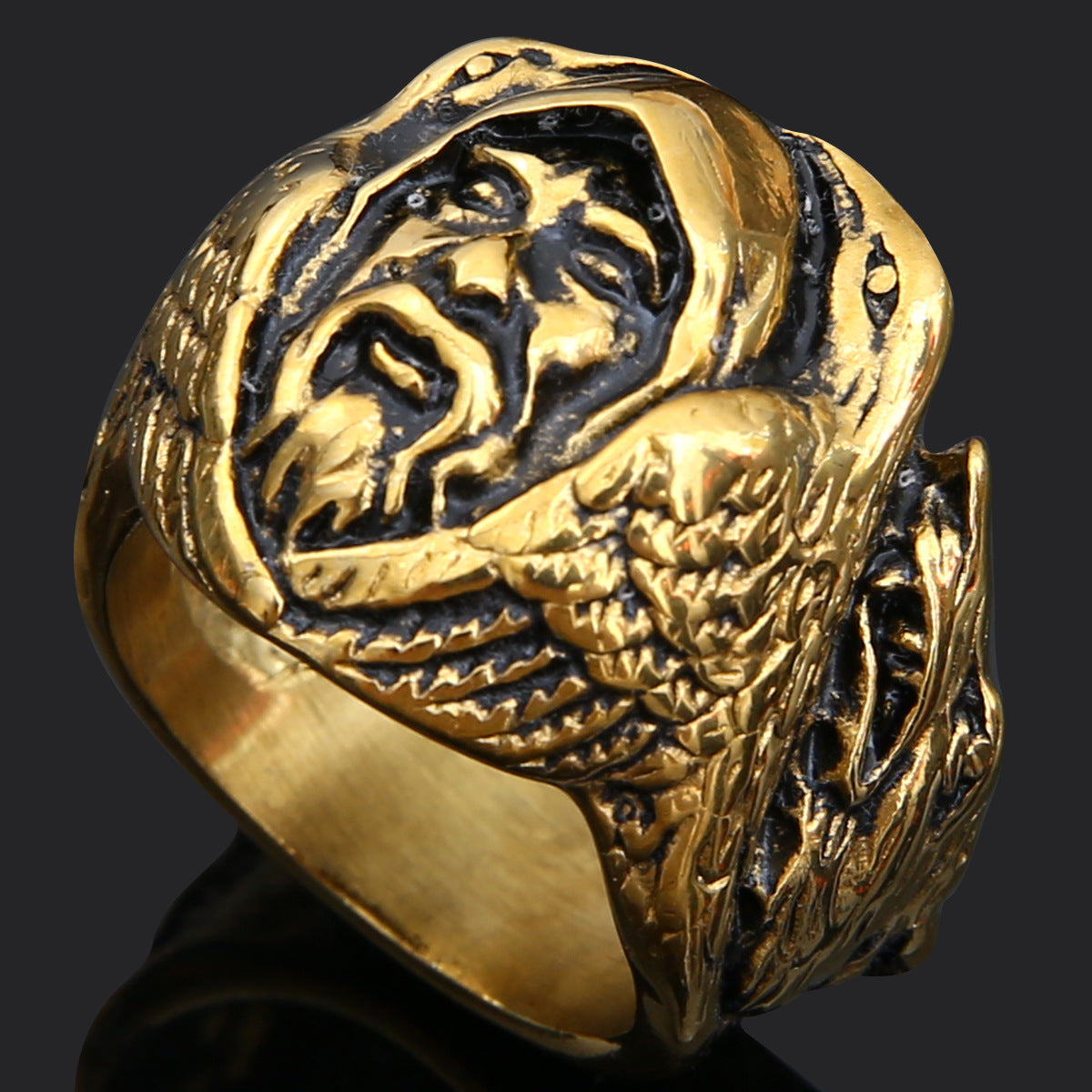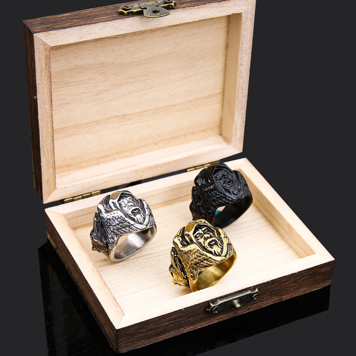 Quake Wolf Head Ring Men's Vintage Rune Titanium Steel Ring
