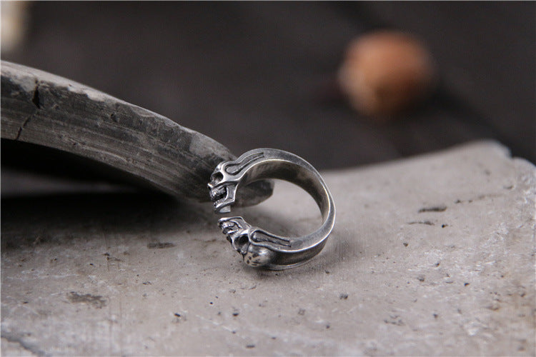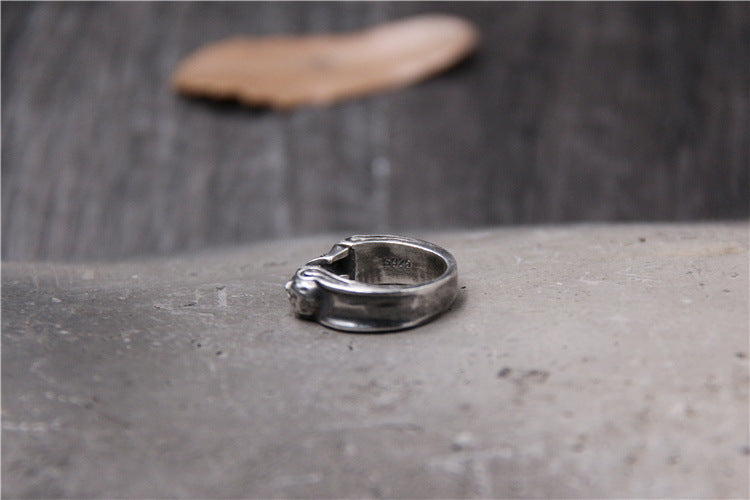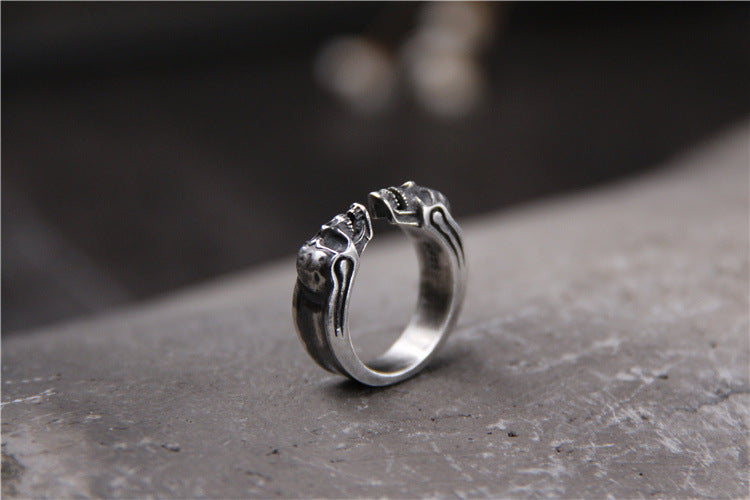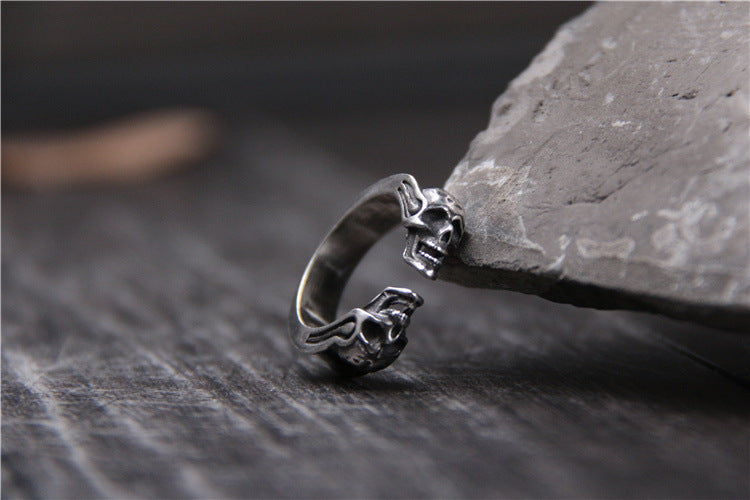 S925 Sterling Silver Vintage Carved Skull Adjustable Ring