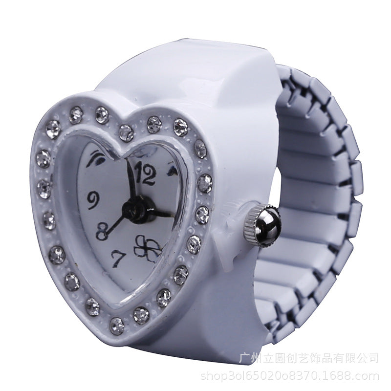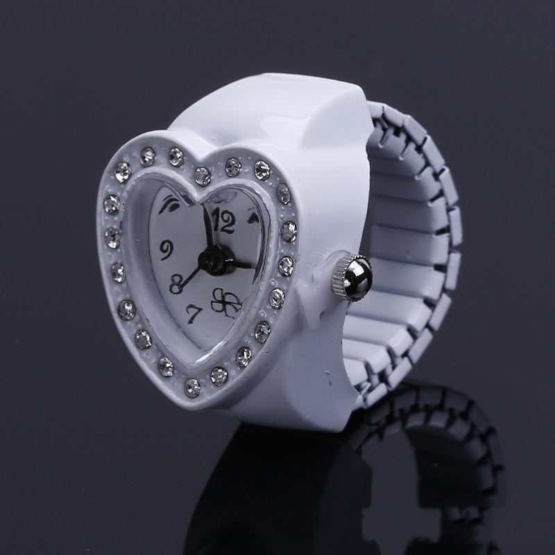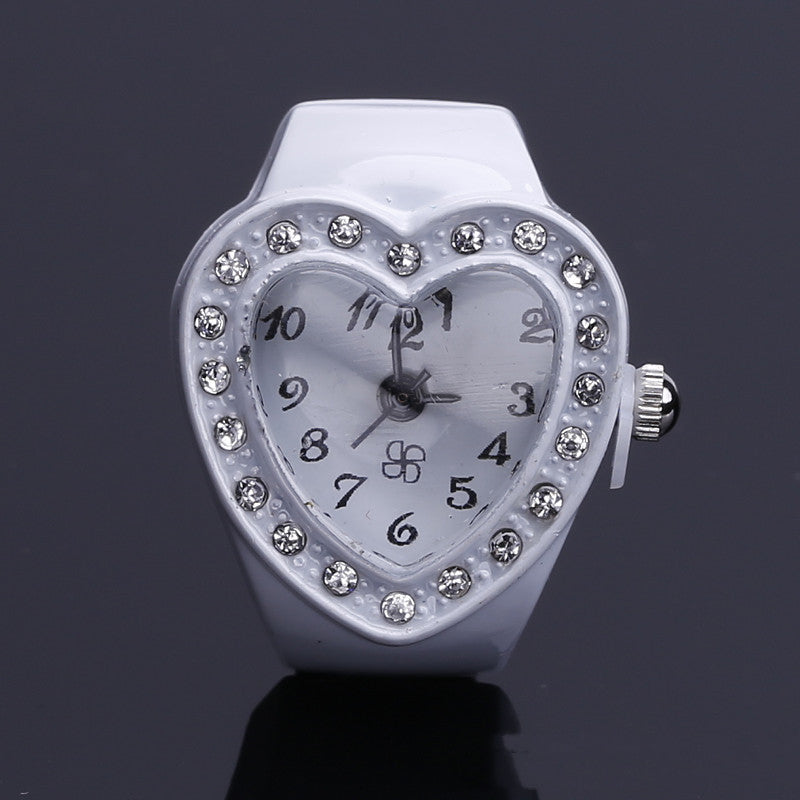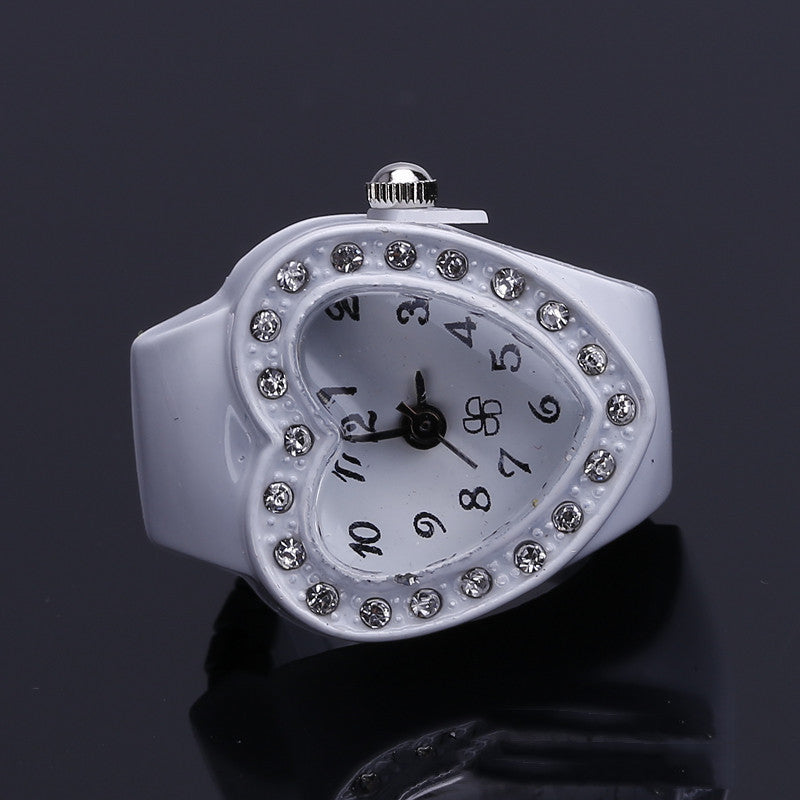 Fashion Creative Simple Elastic Heart-Shaped Diamond Ring Watch