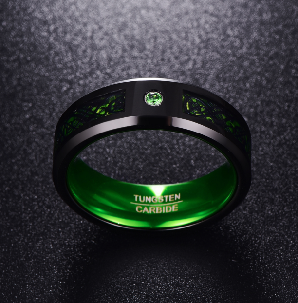 Matte Green Zircon Men Ring Tungsten Carbide Wedding Ring