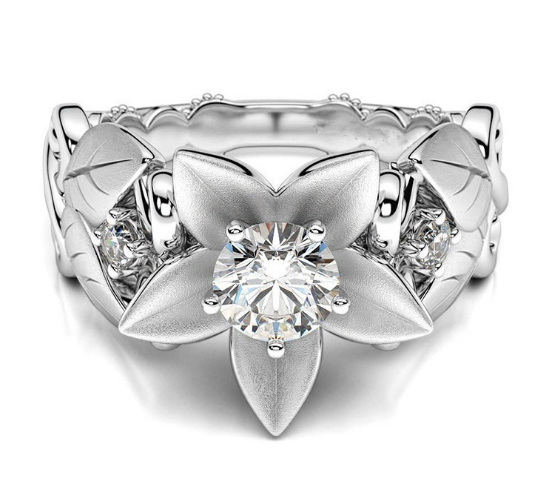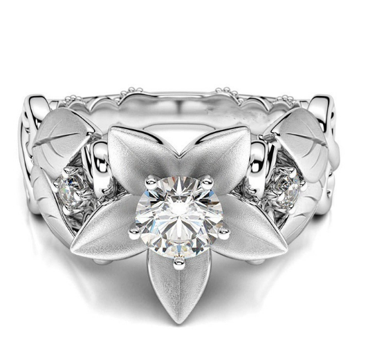 Hot Hot Rose Flower Engagement Ring Female Models Zircon Ring Creative Branches Ring Jewelry