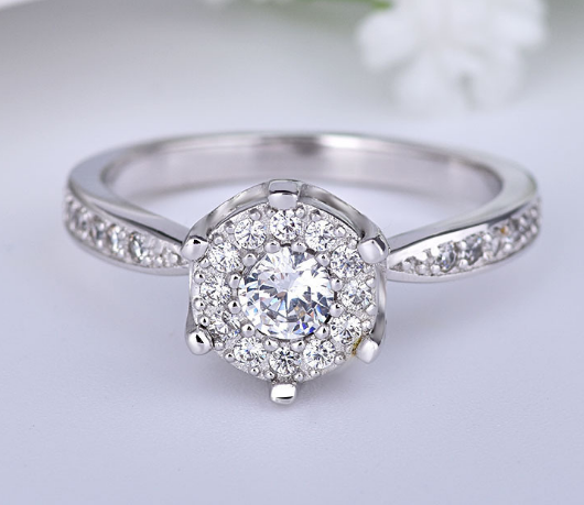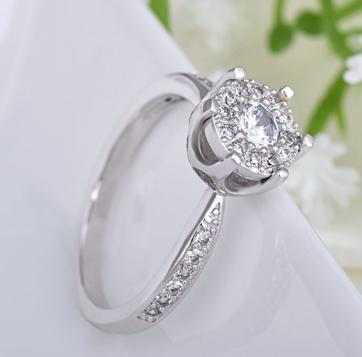 Classic Six Claw Single Diamond Ring Simulation Plated 18K White Goldring Diamond Engagement Ring