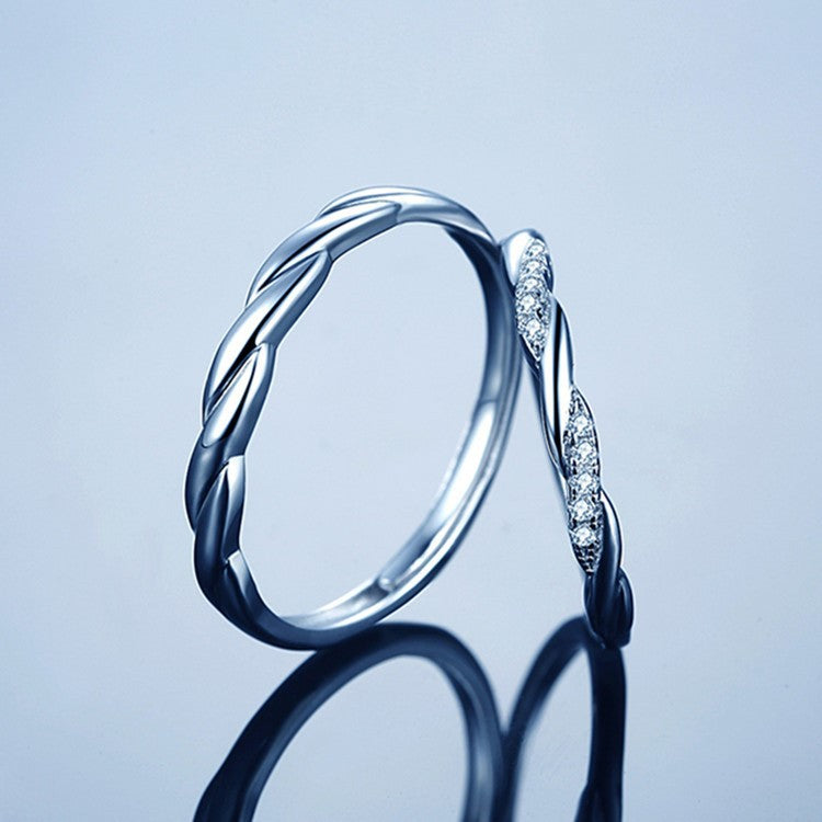 S925 Sterling Silver Water Ripple Micro Inlaid Couple Ring