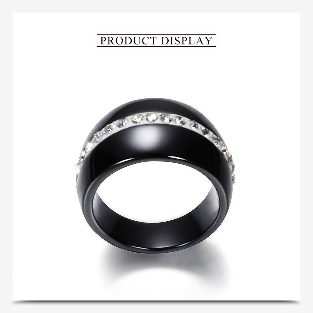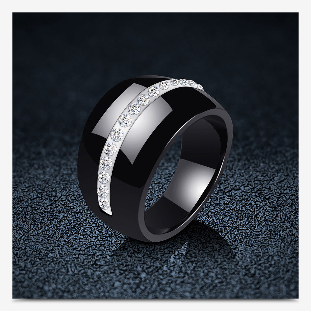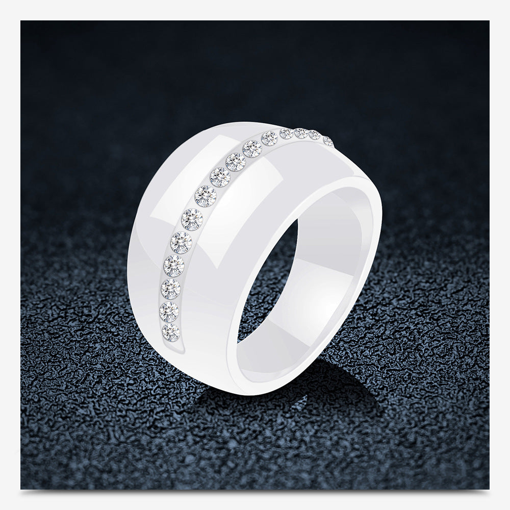 Single Row Diamond-Embedded Elegant Ceramic Ring