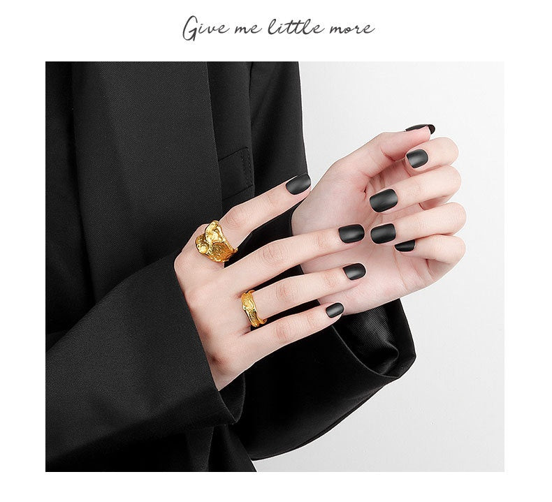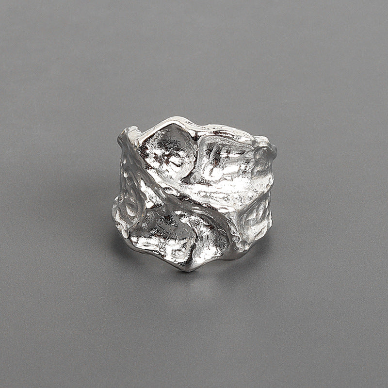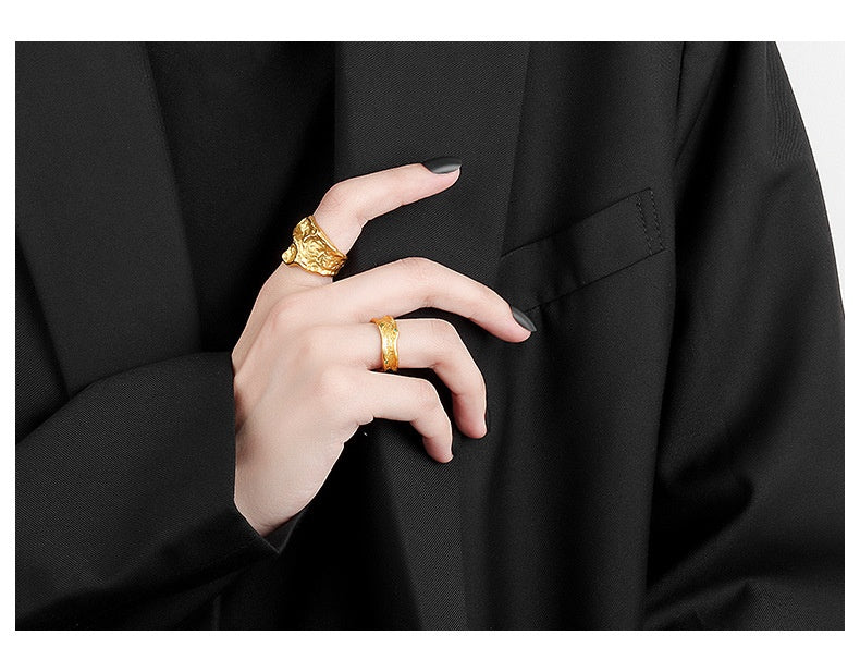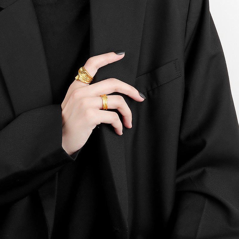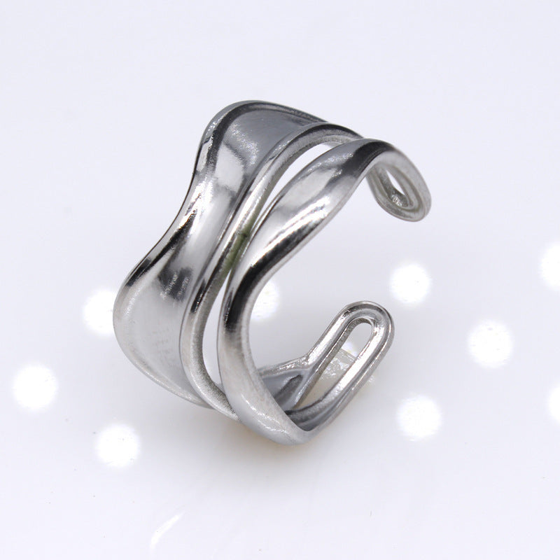 Pleated Hollow Ornament Hip Hop Cold Titanium Steel Women's Open Adjustable Ring
