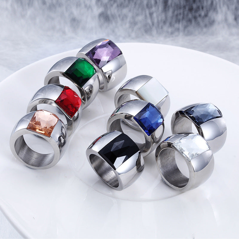Simple Fashion Women's Steel Glass Titanium Steel Ring