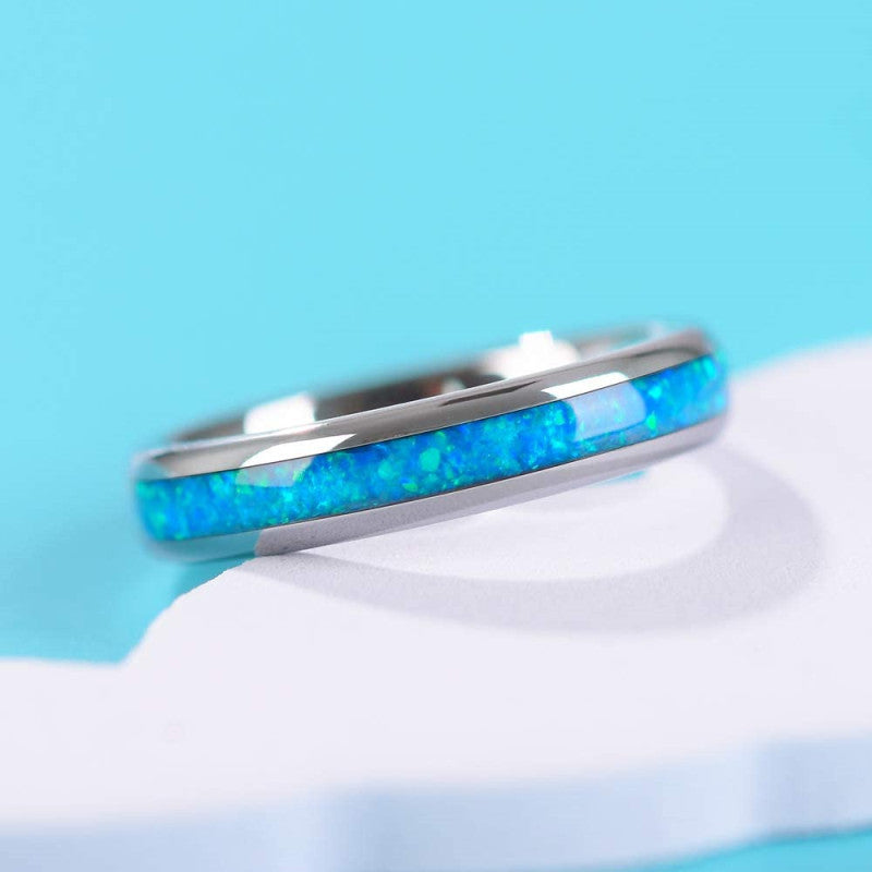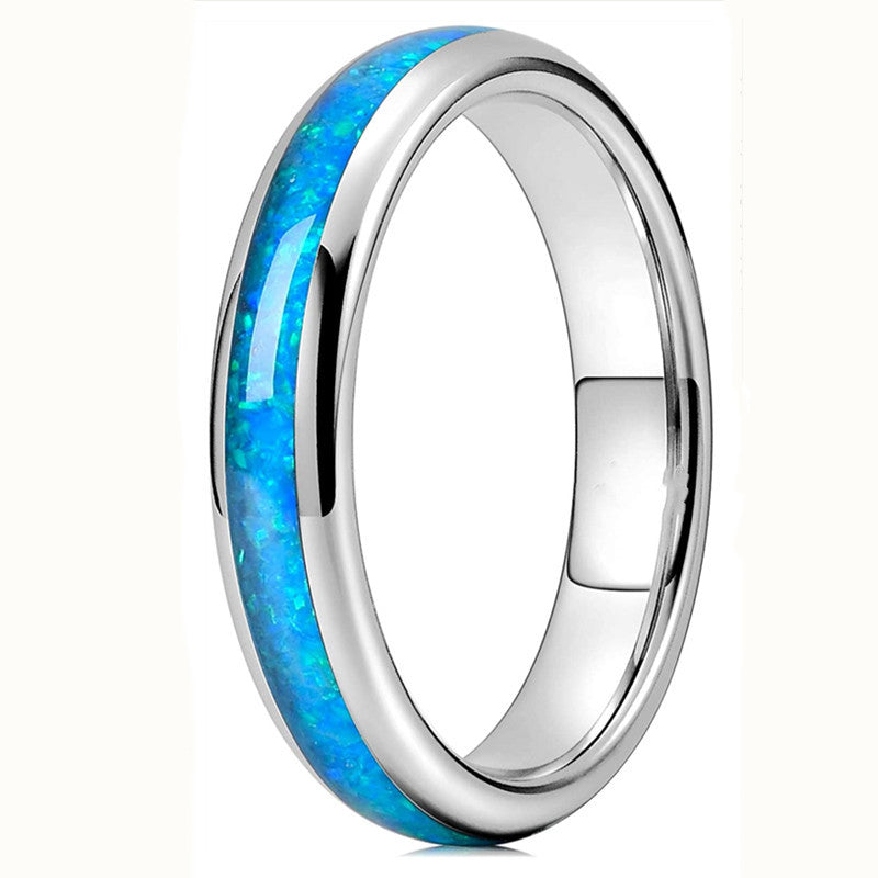 Tungsten 8MM Wedding Bands For Men and Women With Blue Opal