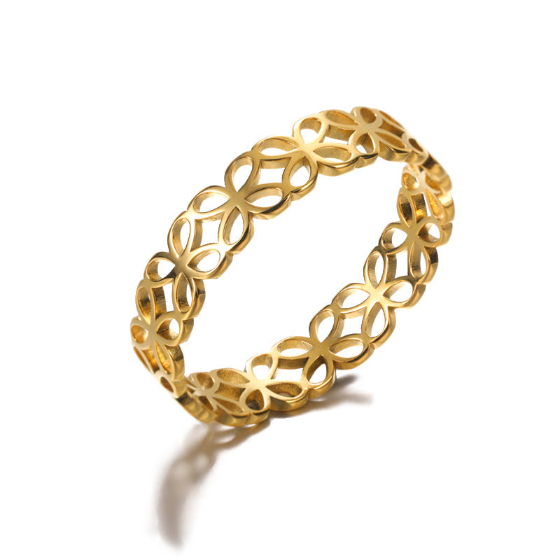 Ring Four Rectangular Buckle Ring 18K Gold Plated Stainless Steel