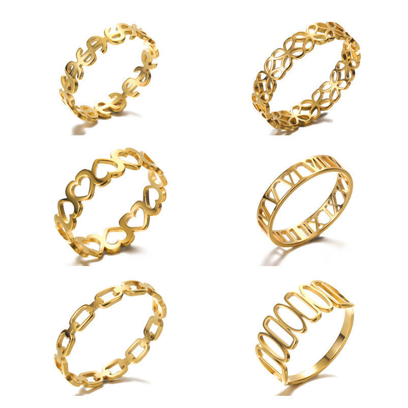 Stainless Steel Hollow Ring Heart-Shaped Geometric Ring