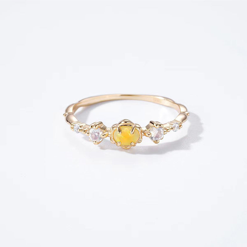 S925 Silver Plating 14K Gold Female Ring Retro Minority