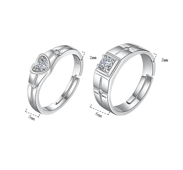 Luxury Square Full Diamond S925 Sterling Silver Combined Ring Set