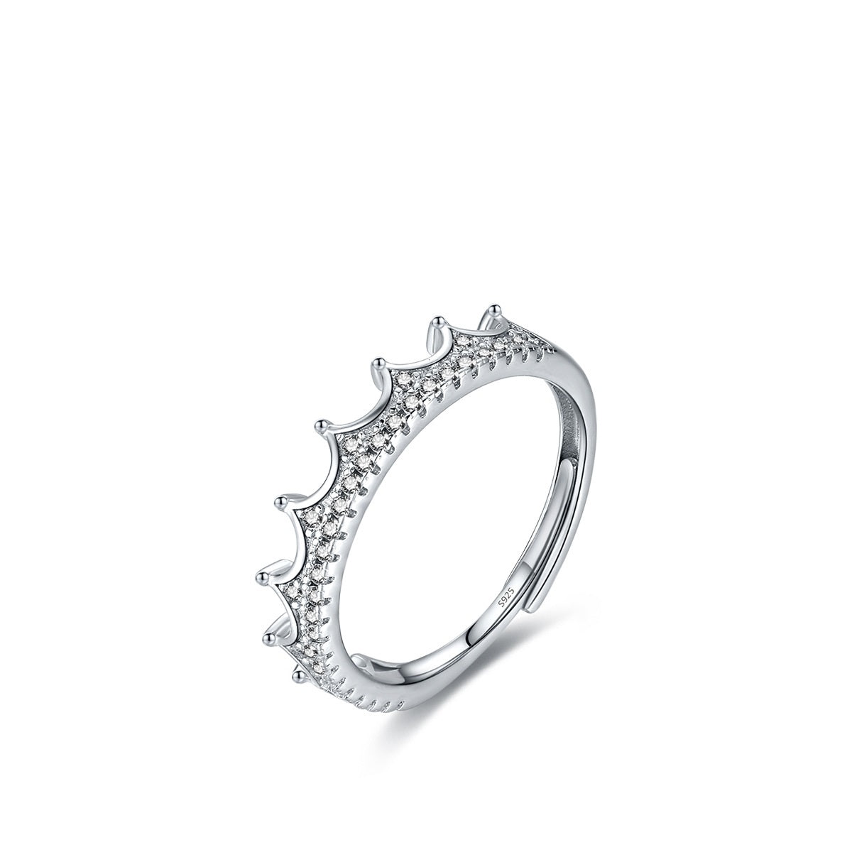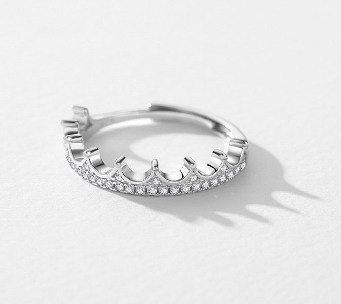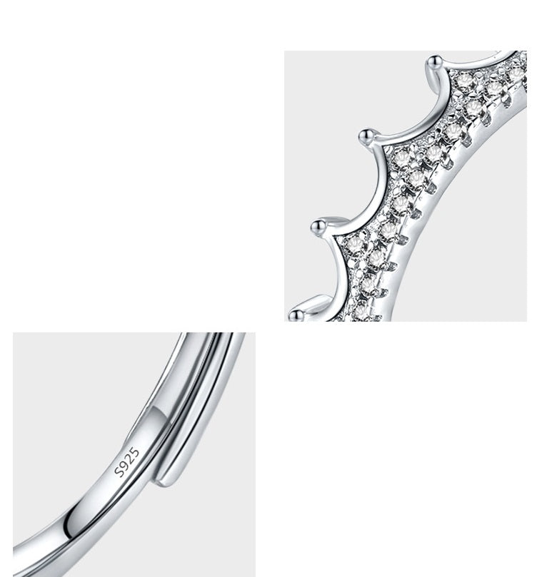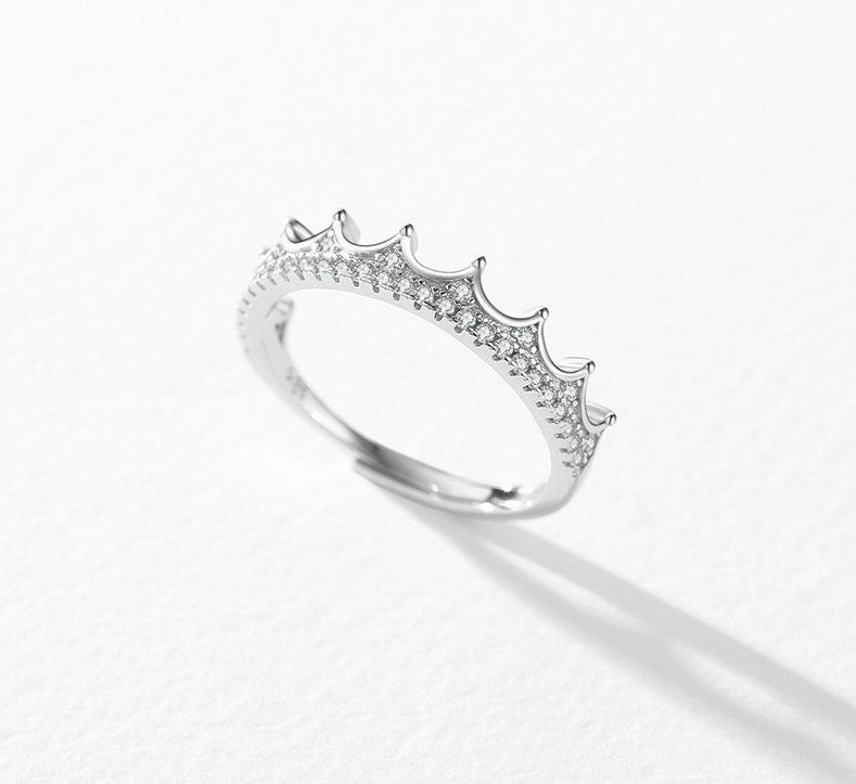 S925 Sterling Silver Micro-Inlaid Diamond Crown Simple Fashion Normcore Style Adjustable Ring