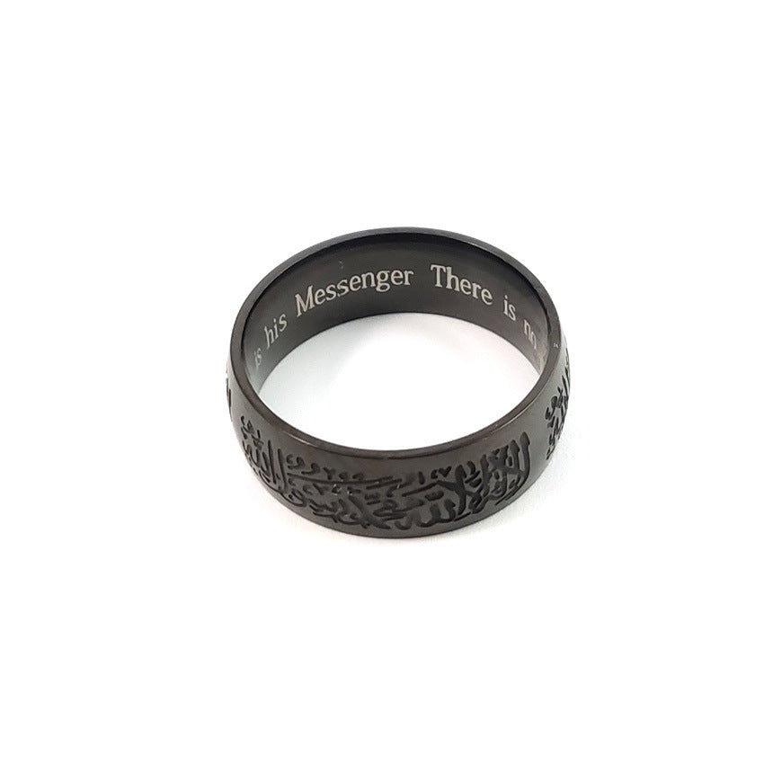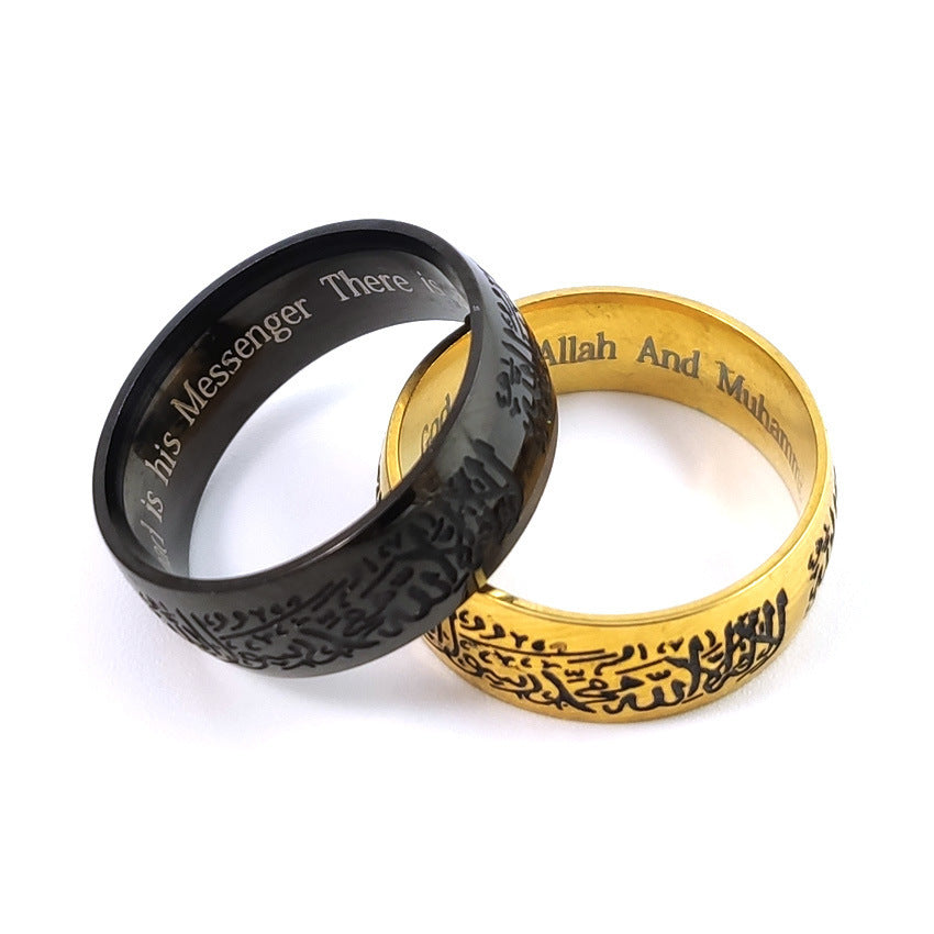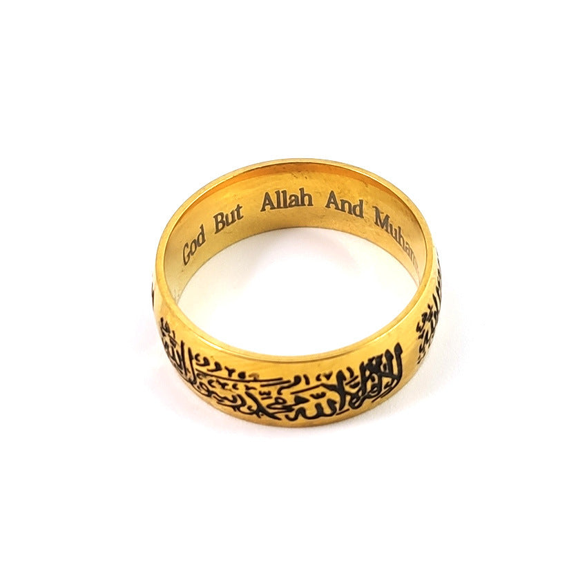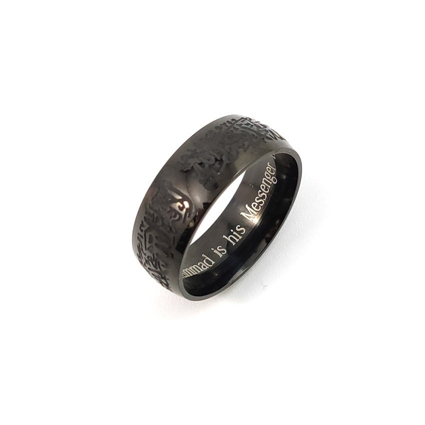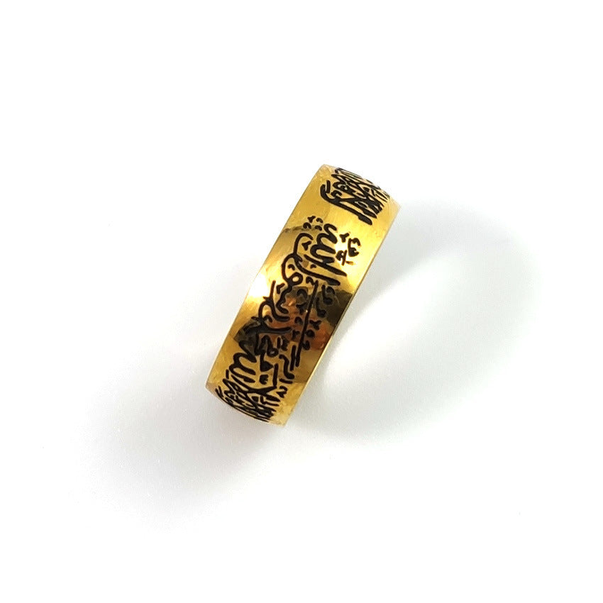 Fashionable Golden Black Doctrine Ring Etching Letters