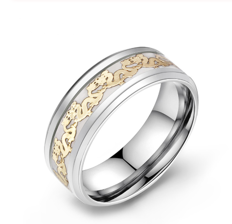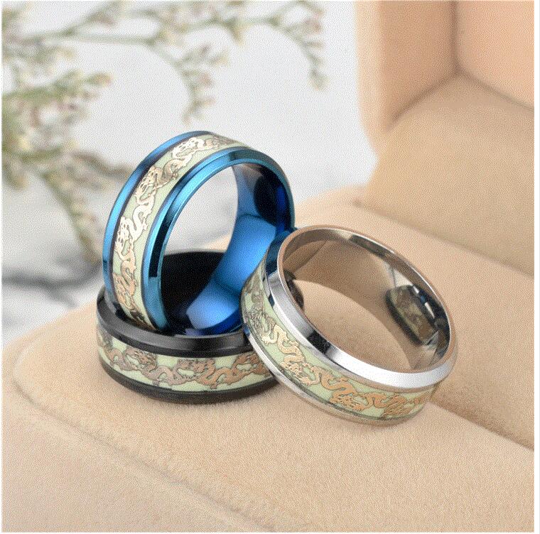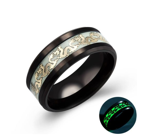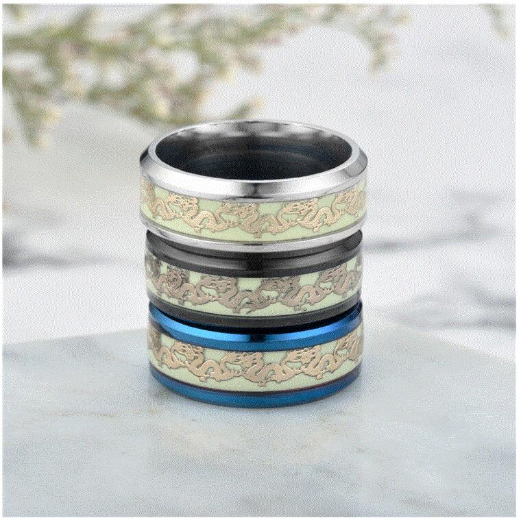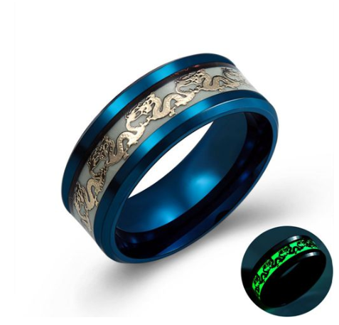 Chinese National Dragon Pattern Blue Ring Fluorescent Ring Male