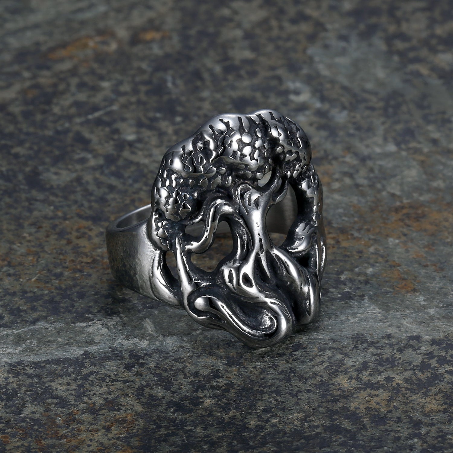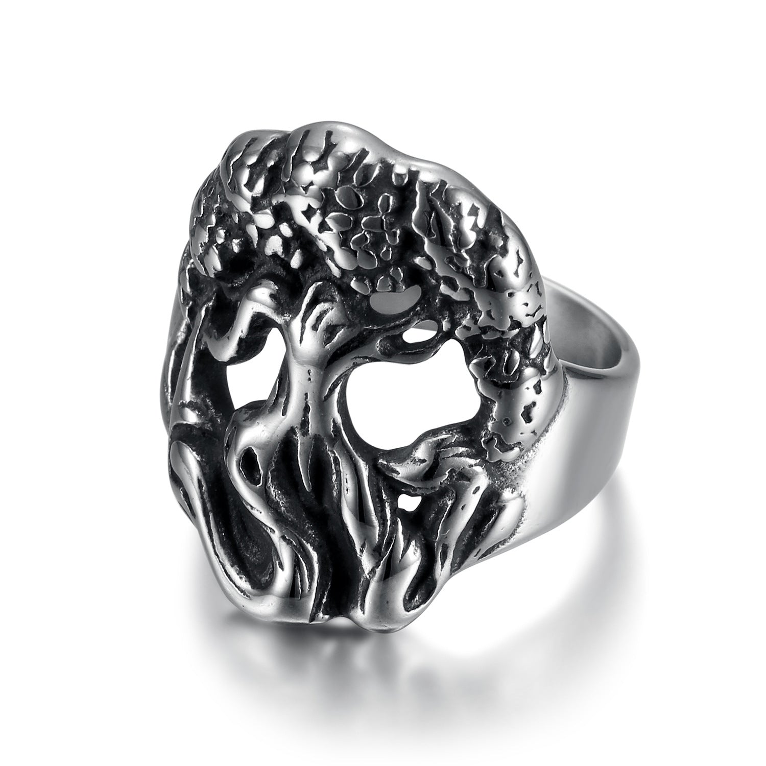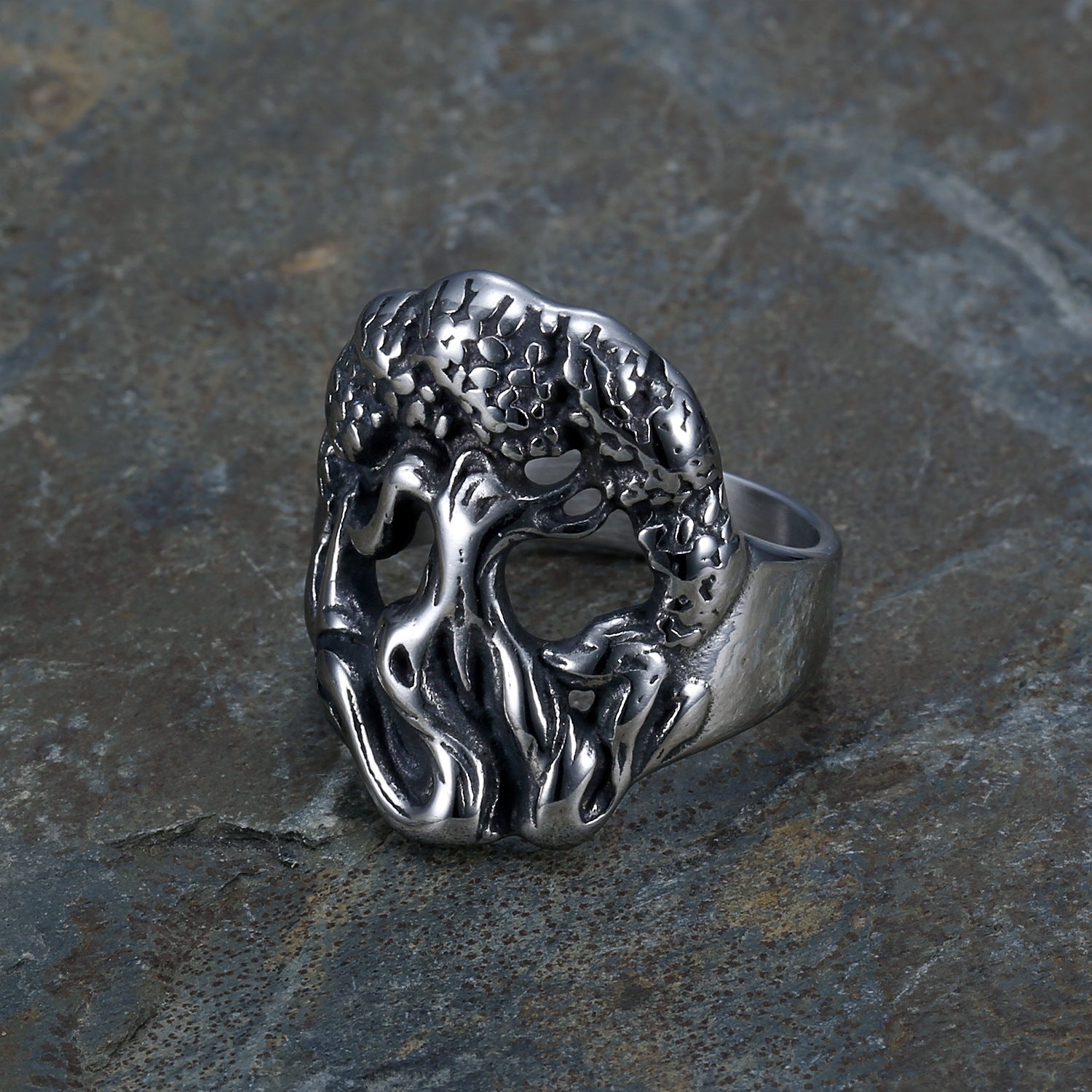 Asgard Crafted Handcrafted Stainless Steel Celtic Tree Of Life And Wood Inset Wedding Ring
