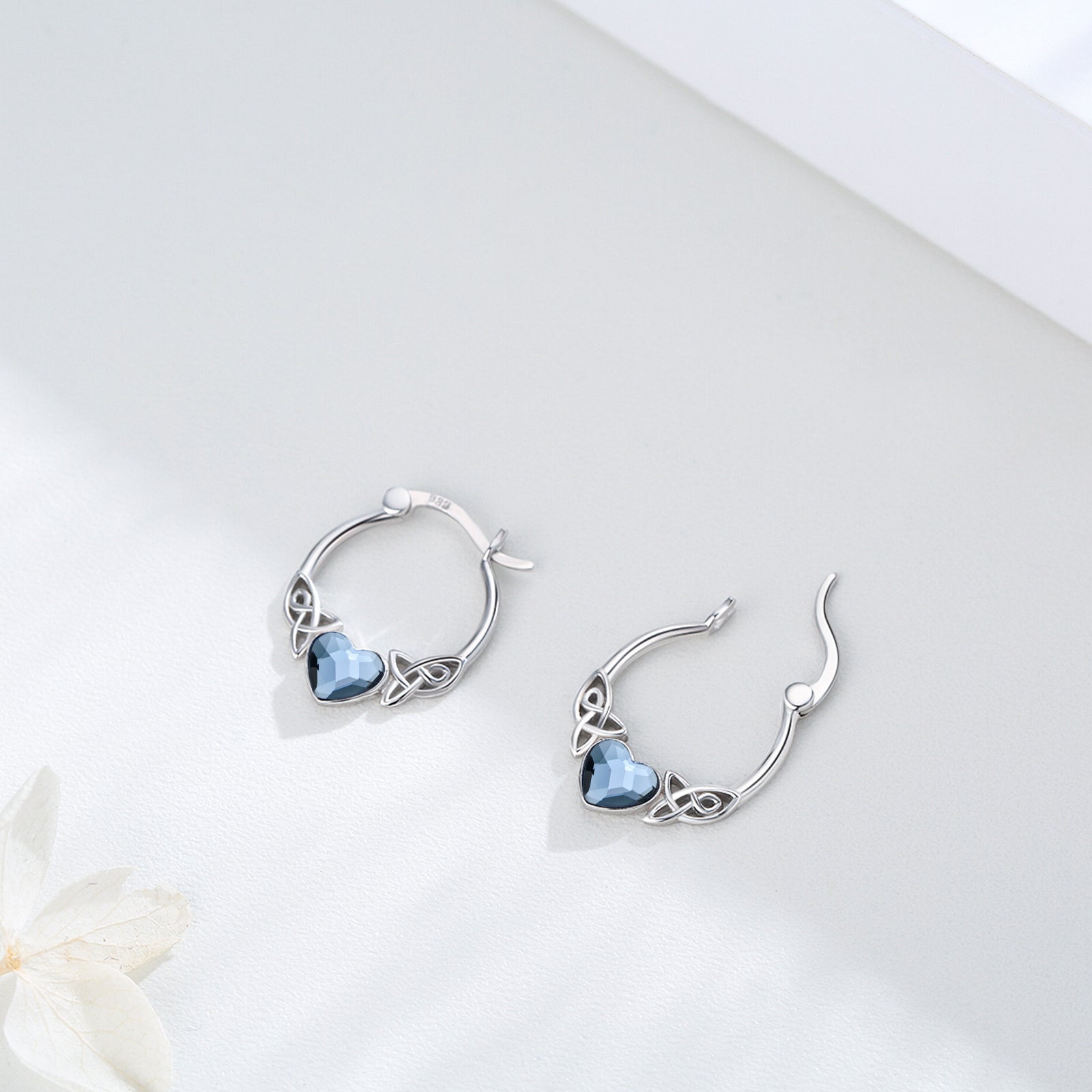 925 Sterling Silver Austrian Crystal Irish Celtic Love Heart Hoop Earrings