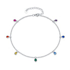 Anklets For Women Sterling Silver Multi Color Oval Rainbow Anklet Bracelets Fashion Jewelry Gifts For Women Teen Girls Friend Birthday