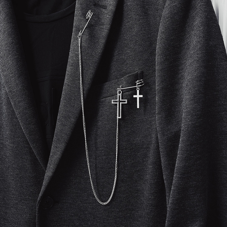 European And American Ins Simple Punk Pin Clip Chain Brooch