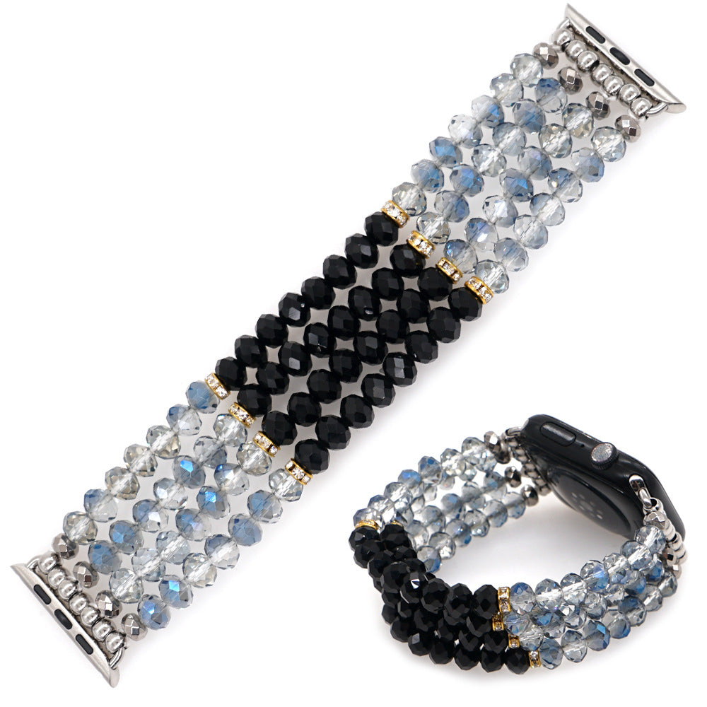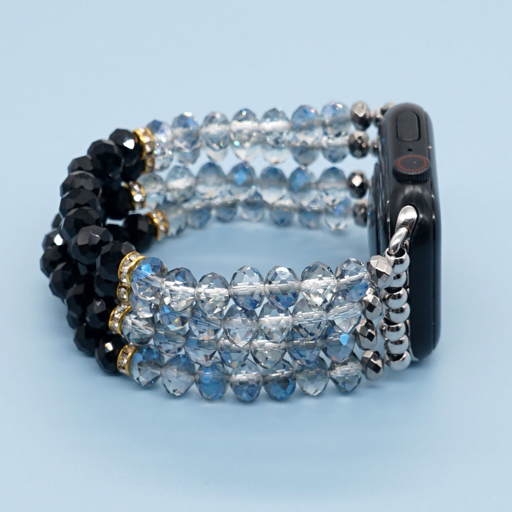 Blue Black Crystal Strap With Gold Plated Gallstone Spacer And Square Watch Face