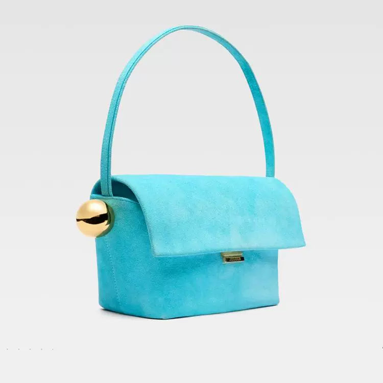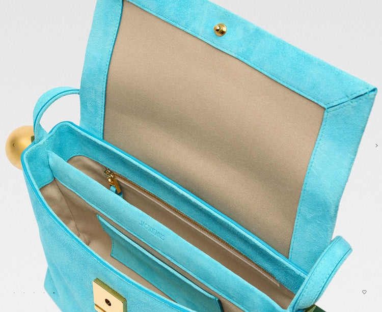 This bag is inspired by the bold silhouette and French minimalism of the original Jacquemus “La Casa” shoulder bag. While the couture version is crafted from Italian nubuck, our look-alike captures the essence with soft genuine cowhide, custom details, and vivid colors — at a far more accessible price.