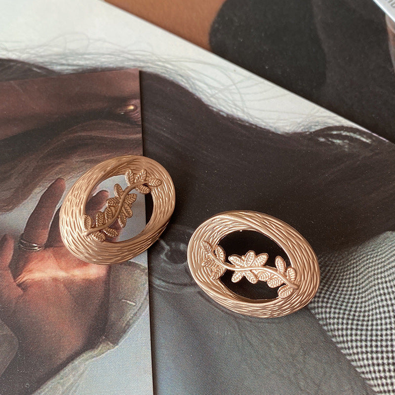 Metal Button Hollow Leaf Shell Decorative Trench Coat