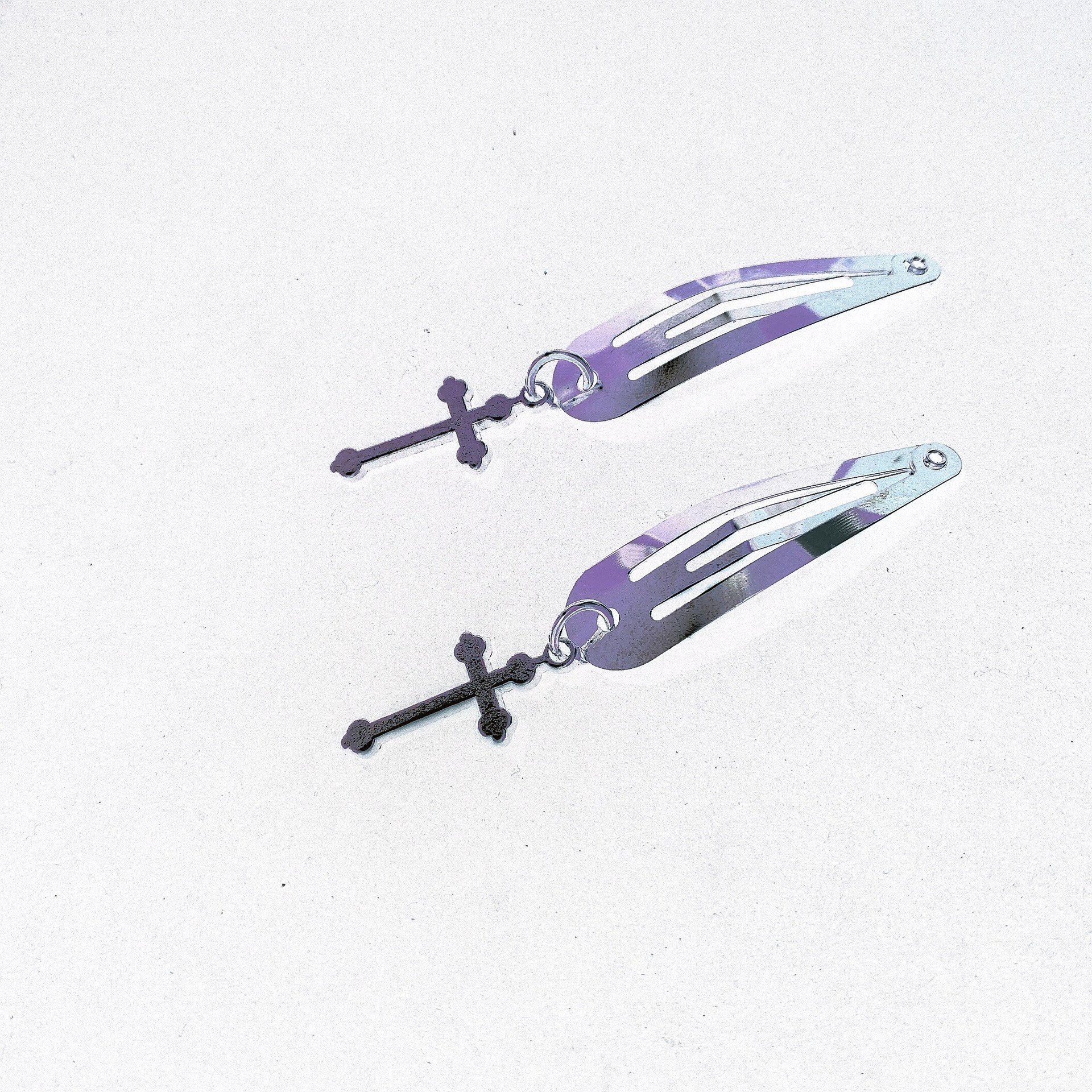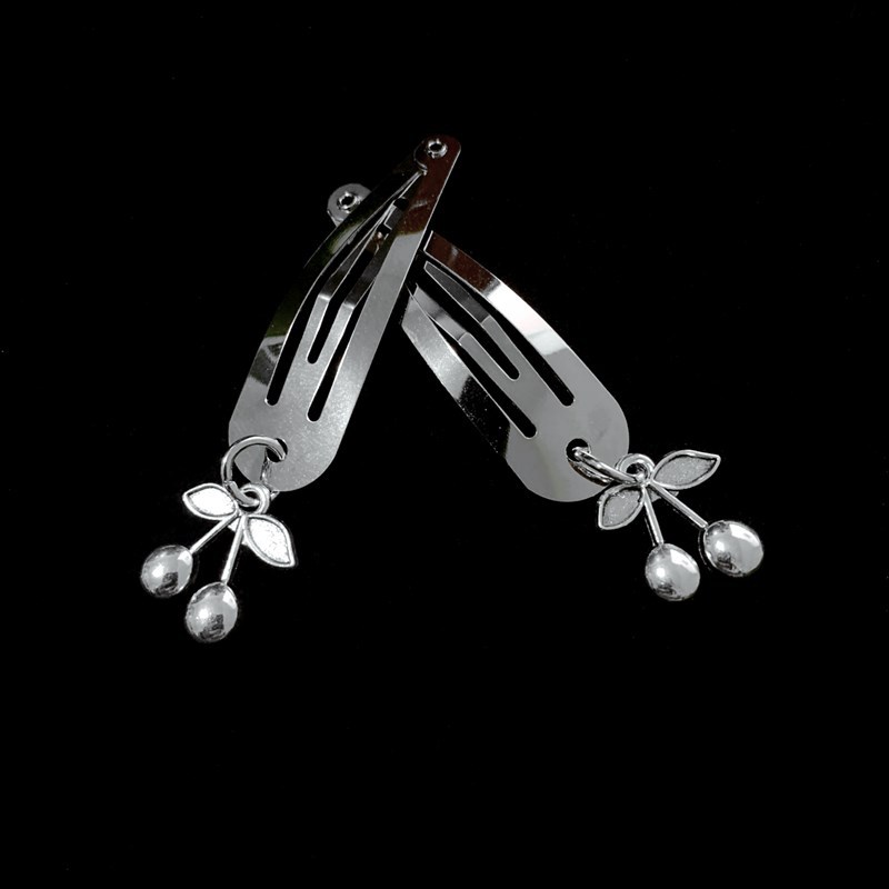 Millennium Punk Hairpin Internet Celebrity Silver Metal Side Clip Cherry Cross Heart Flowers Chain Barrettes
