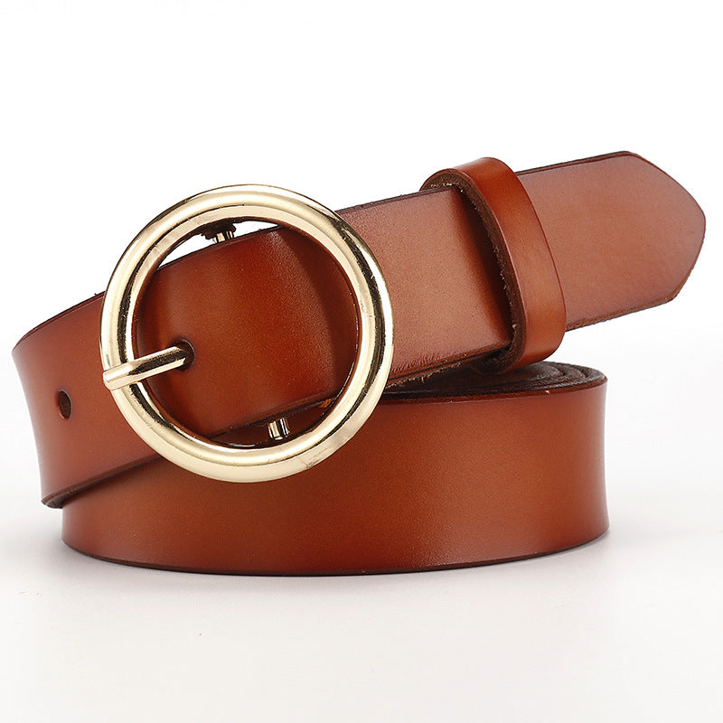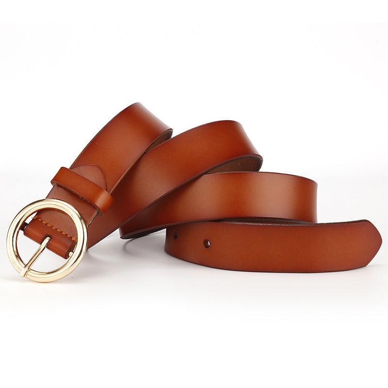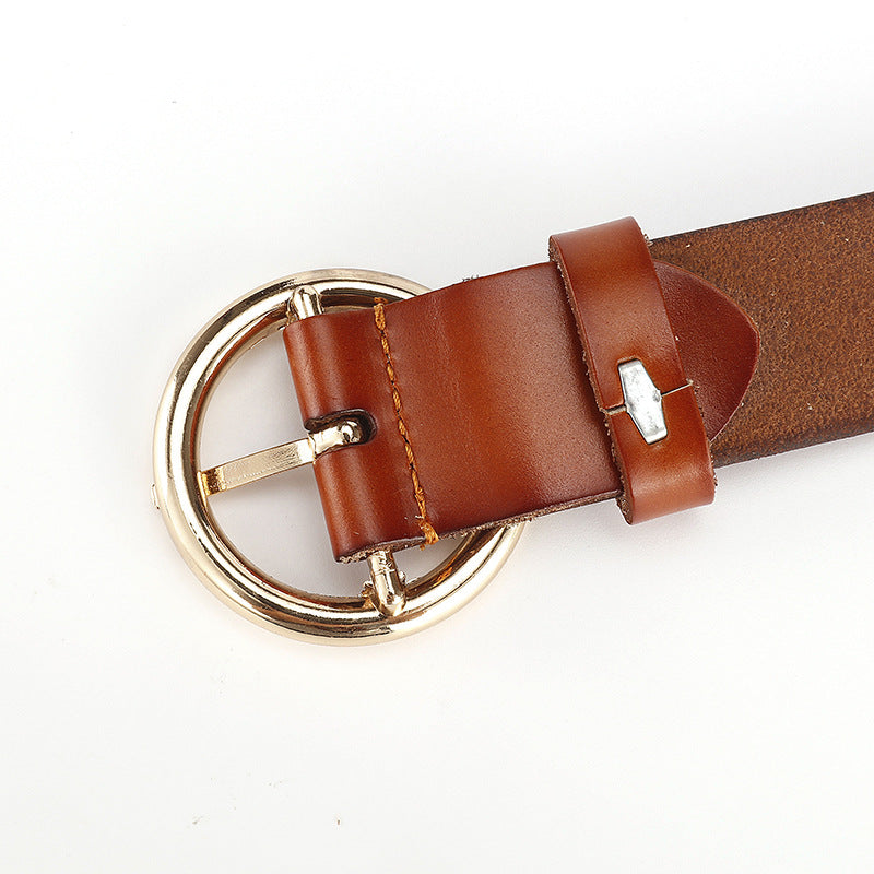 Women's Belt Female Wide Leather Casual Wild Student Belt Fashion Round Pin Buckle With Jeans Belt